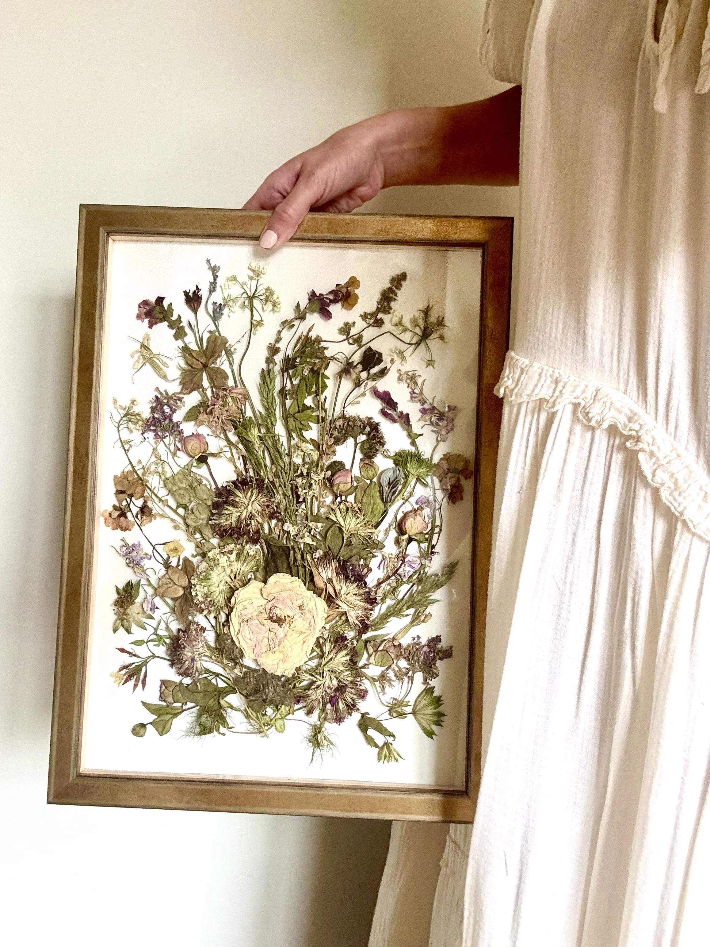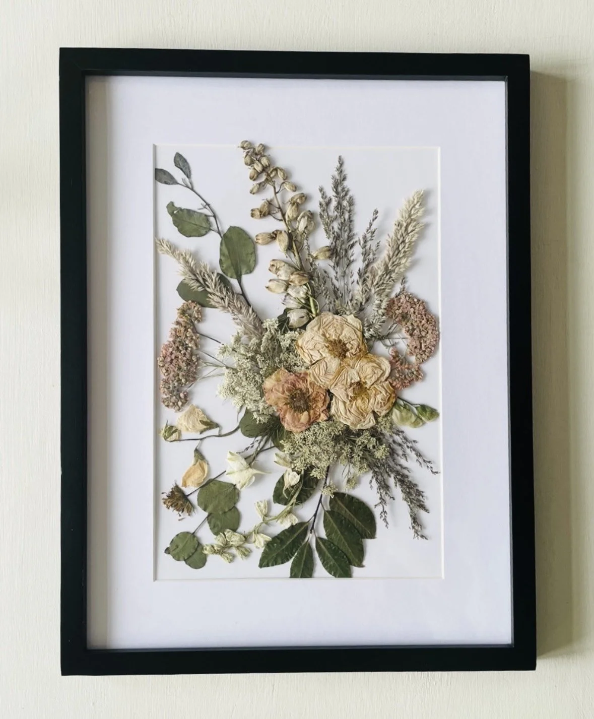 At The Flower Press Shed, every piece is designed with care and attention to detail, ensuring your pressed floral artwork reflects the natural beauty of your bouquet.